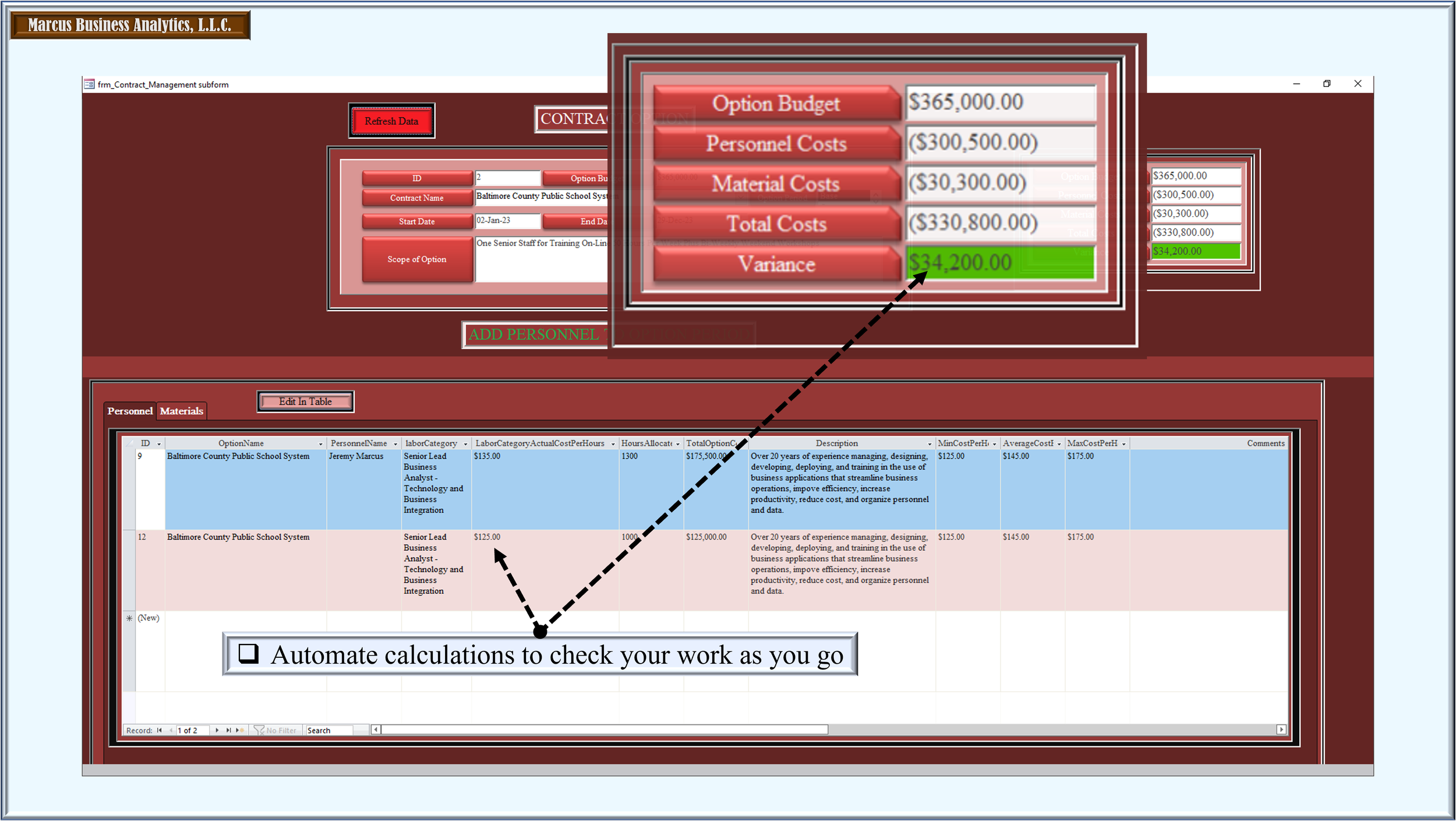 Defining your future state is simple once you know where you are and do not want to be in business. Improving on all identified deficiencies is always the objective. Let Marcus Business Analytics, L.L.C. assist your organization, no matter how big or small, with modernizing how it does business. Take the first step with Microsoft Office Automation. Afterwards, scale to a size that works with tested and vetted requirements collected at a fraction of the cost.